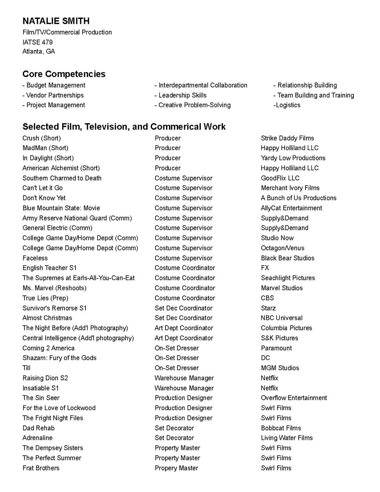 Film/TV/Commercial Production
